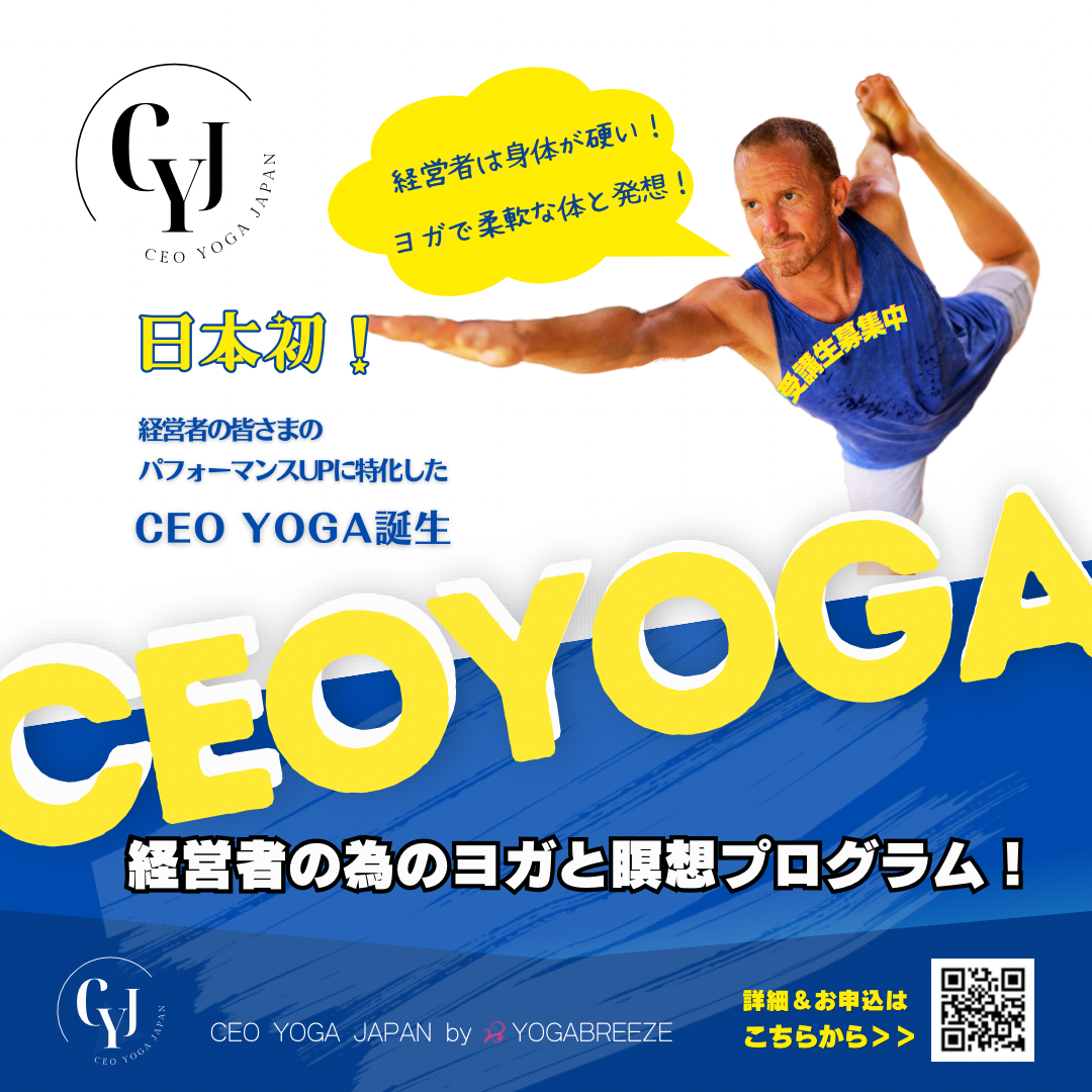 ヨガブリーズでは日本初、ビジネスの成功と健康のバランスに役立つことを目的としたCEO YOGA JAPANを立ち上げることになりました。3カ月間の経営者のためのヨガと瞑想プログラムを提供いたします。